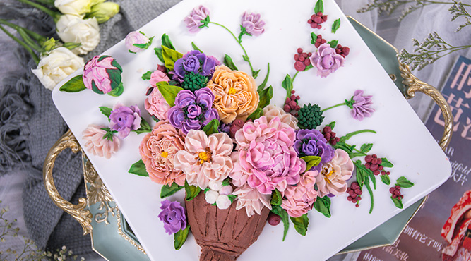 辛缇韩式裱花课程精选了花卉制作、叶子制作、3D浮雕制作、杯子蛋糕等多类内容。课程中学习调色方法、技巧,全面掌握调色技能,ins风油画抹面,平面花装饰,多元素搭配让韩花作品更出效果,更适合私房接单。韩式裱花课程从每一个裱花中的基础原材料开始,引领学员将裱花制作中的知识相互关联,真正了解裱花制作的构成体系,并将所学知识系统化之后,作为实际操作的理论支撑,用科学的方法去计算和制作,即使面对市场不断变化的潮流也能从容应对。